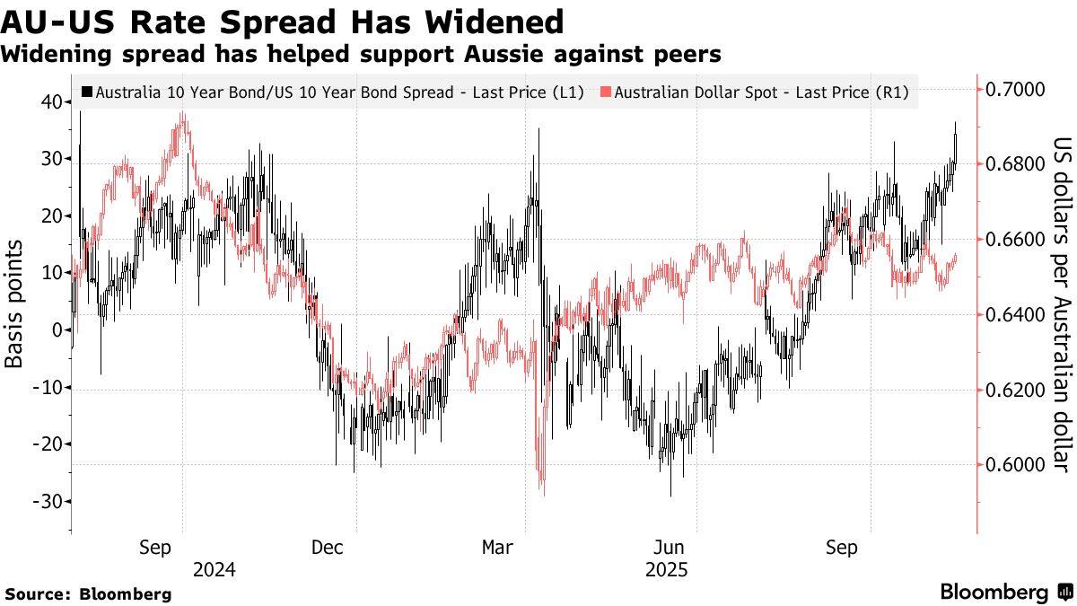 由于澳洲聯儲與好意思聯儲之間的戰術預期出現分化,澳大利亞歷久國債收益率相對好意思債收益率的差距也有所上升,創下自2024年8月以來的最高相對水平。這一走勢撐握了澳元,使其自9月1日以來成為十國集團(G10)貨幣中領略最強的貨幣之一。